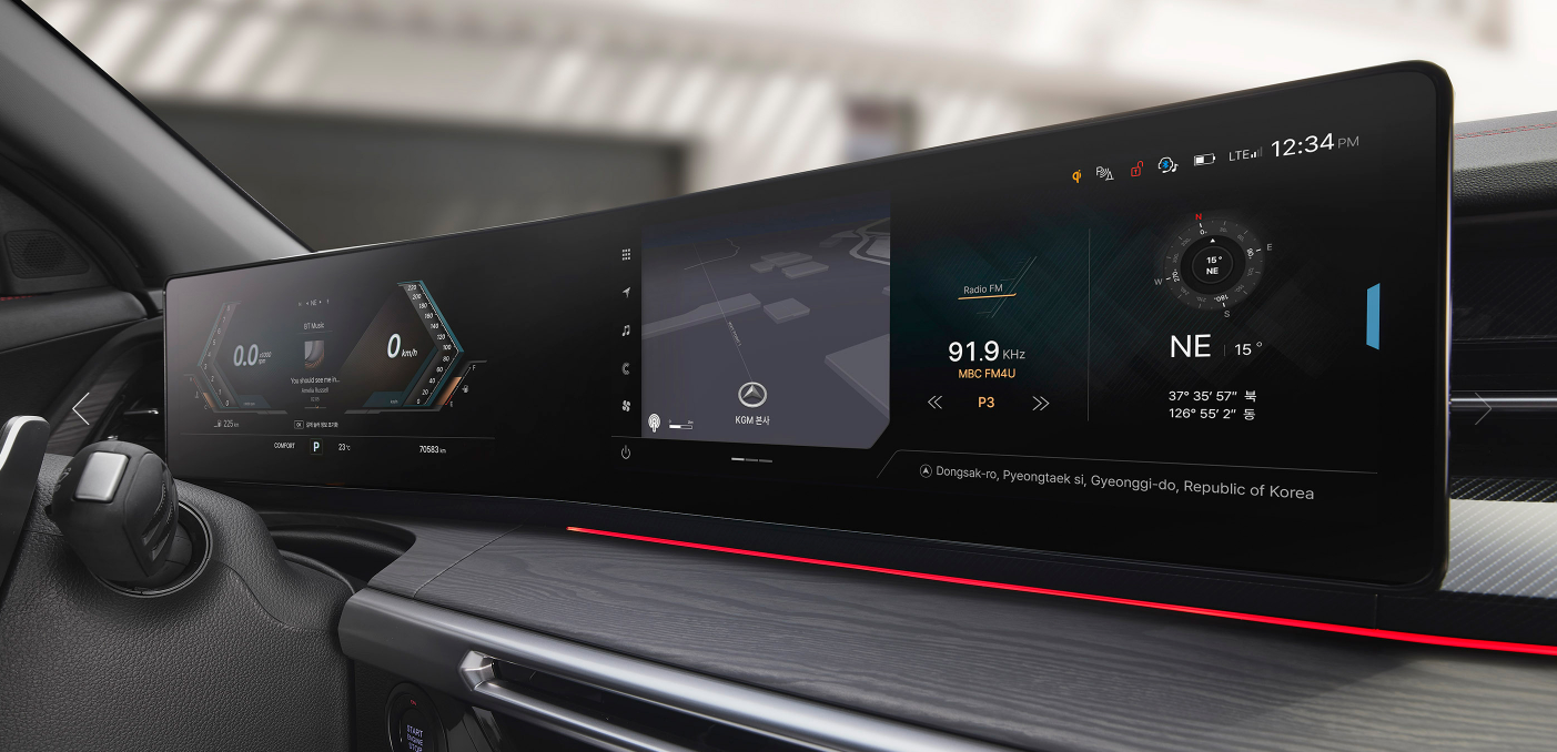 2025 액티언은 KGM 토레스와 플랫폼을 공유하다 보니 기존 토레스에서 사용되던 시스템을 적용한 것이 많아 보입니다. 기존 인포테인먼트 시스템은 개선해야 할 부분이 있었는데 새롭게 개선된 시스템이 적용된다고 합니다. 계기판과 센터 디스플레이가 각가 12.3인치의 큰 사이즈여서 보기 편해 보입니다.